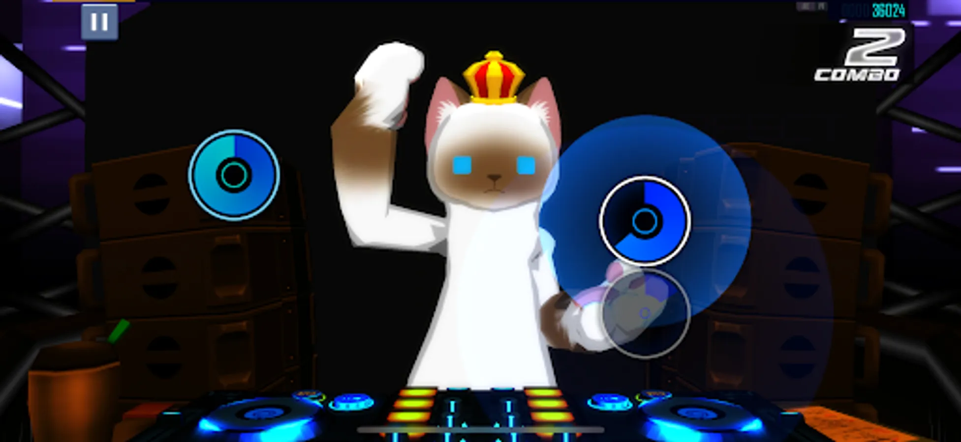 CAT THE DJ is a practical DJing rhythm game with real DJ console features! Our cute cat avatar will be DJing and dancing on stage with you!