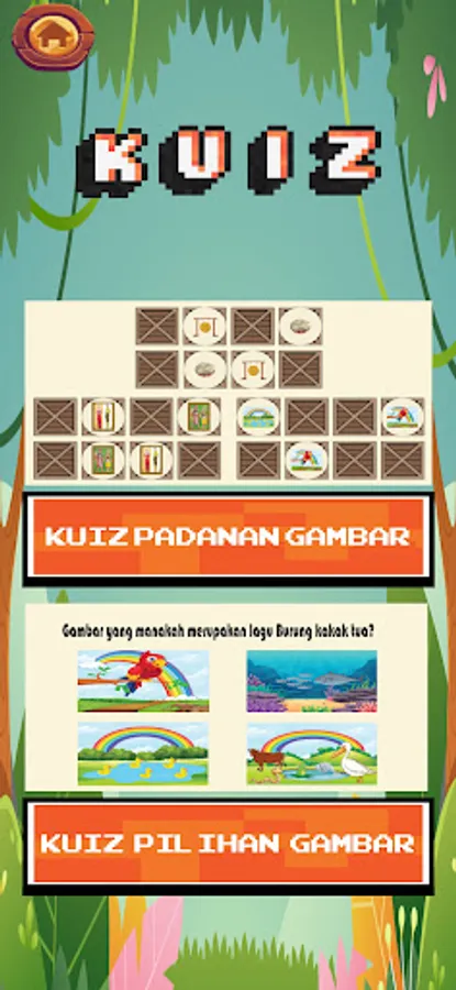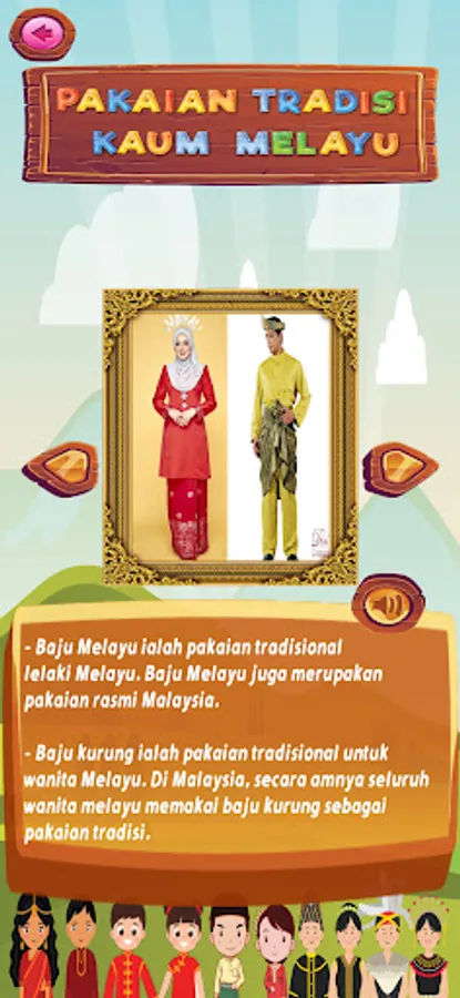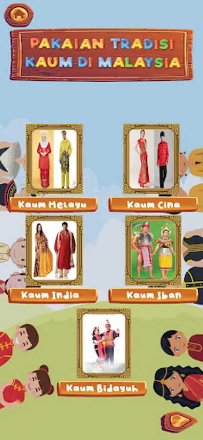 The purpose of this application developed is to attract children's interest with traditional children's songs in Malaysia from an early stage. In addition, it can help children in cultivating the spirit of culture in them with traditional children's songs in Malaysia. This application contains several Malaysian children's songs, traditional Malaysian costumes, traditional Malaysian musical instruments, and a quiz that is divided into two, namely a matching quiz and a picture selection quiz.