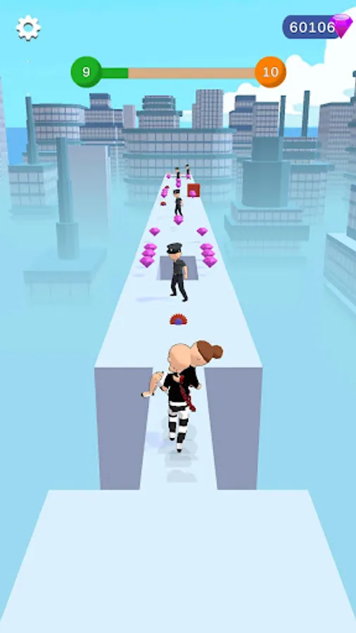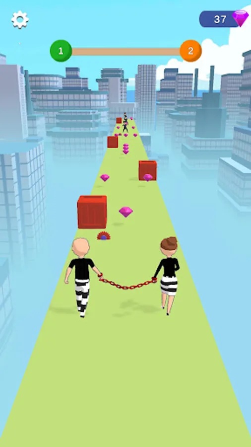 Lovers tied together with clamps. They run away on the roofs and need your help to escape. Don't crash into obstacles, stay away from cops and collect the gems.