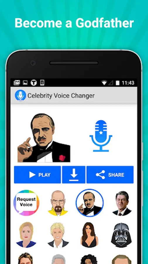 Legal Notice: ALL ORIGINAL CONTENT and ARTWORK - NO IMPLIED AFFILIATION or ENDORSEMENT - NO CELEBRITY NAMES or LIKENESS - IMPRESSIONS FOR THE PURPOSE OF PARODY - VOICES ARE ONLY IMPRESSIONS - NOT A SOUNDBOARD - Celebrity Voice Changer is meant to be used as a parody and to create parody. HatsOfApps is not claiming an affiliation with any celebrity who is being parodied. All content within Celebrity Voice Changer is original, and there are no Celebrity or Brand names; only our poor impressions. HatsOffApps uses user-generated content to create the technology and to create user-generated voice changer.
