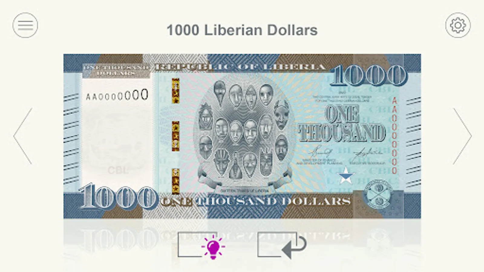 The "LBR Currency" app allows users to discover the design and the security features of the new Liberian banknotes brought into circulation in 2022. It explains interactively how the security feature react when a banknote is tilted, held against the light, or if a magnifier glass is used.