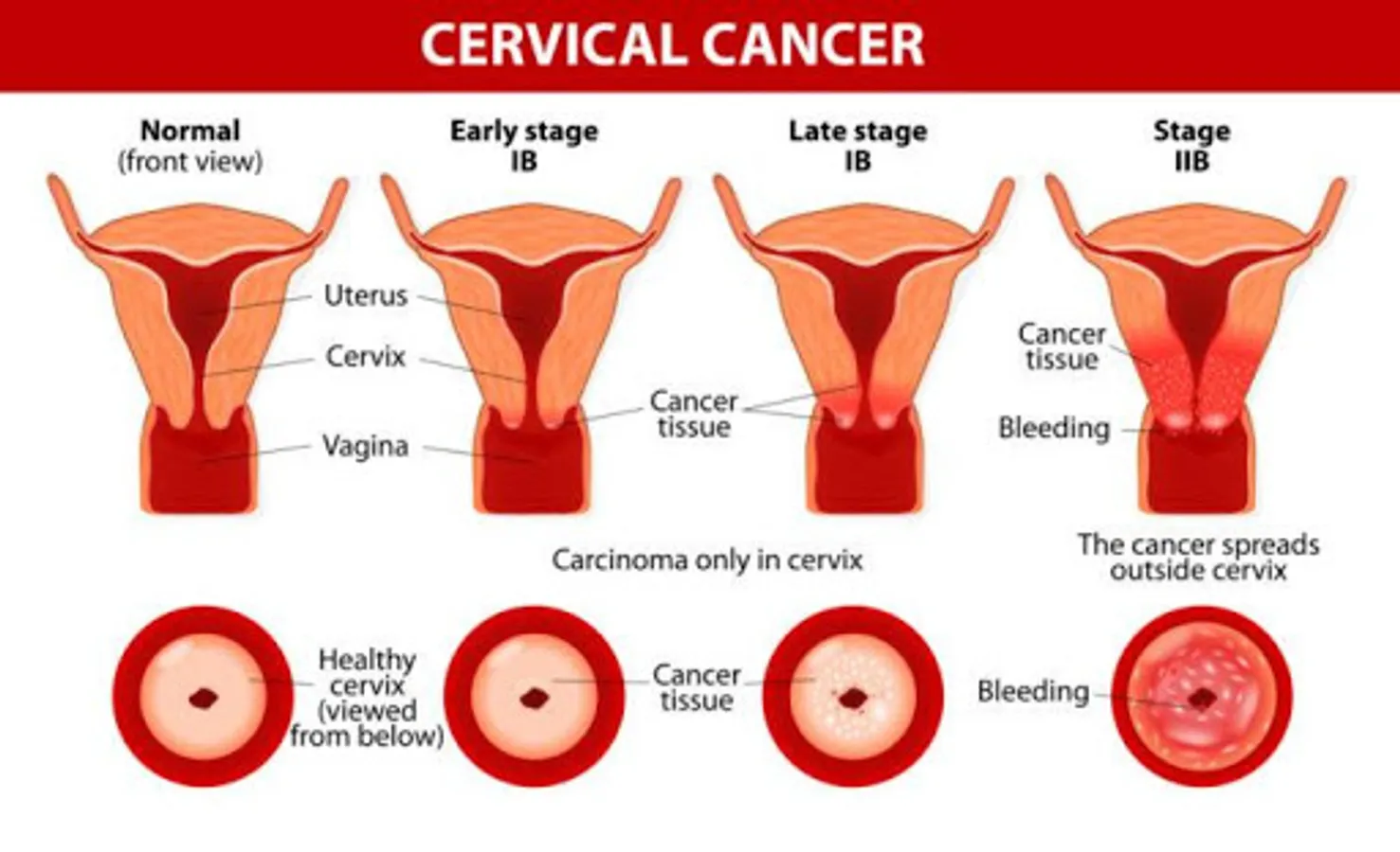 Cervical cancer is a cancer of the cervix (the lower part of the uterus). It can happen to women at any age, but it usually occurs in midlife in women between 20 and 50. The overwhelming majority of cases are found in women who do not receive routine medical care and regular pap screenings. Fortunately, cervical cancer is a very curable disease when it is found early and treated.[1] The major symptoms you should look for are abnormal vaginal bleeding and pain. Symptoms usually do not begin until precancerous or abnormal cells have grown into an invasive cancer. So, call your doctor as soon as you notice the changes. Regular screenings with PAP smears and HPV tests can help you discover precancerous lesions early, before they can become cervical cancer