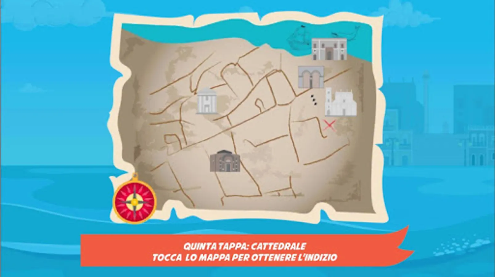 As one of the boys, you will have to pass various tests located in the most characteristic places of the city of Brindisi and find the treasure through coded clues.