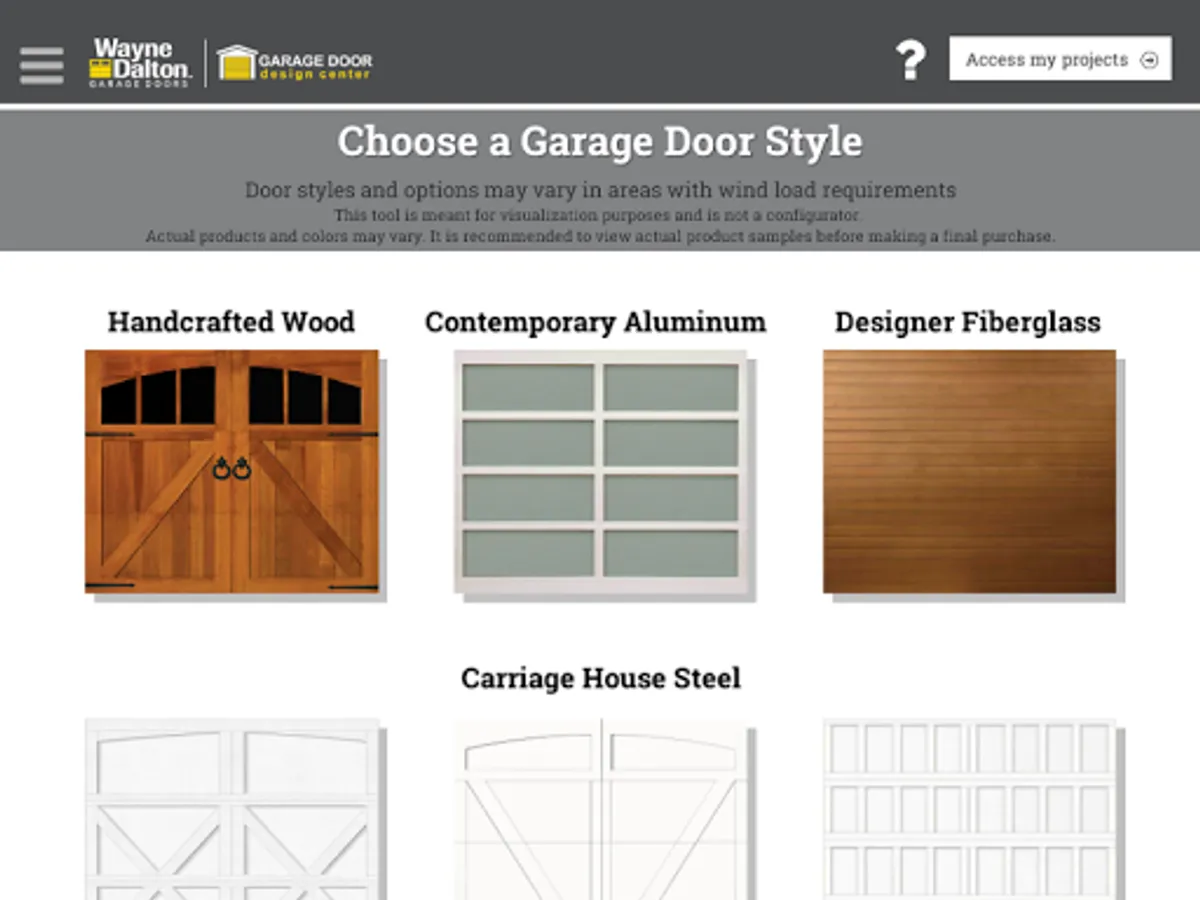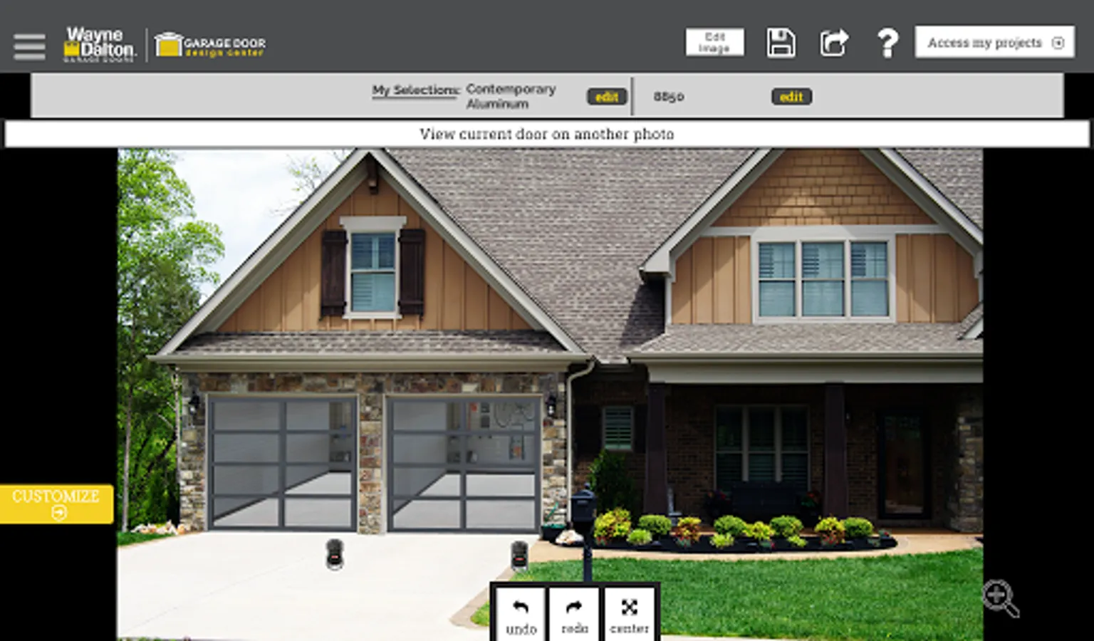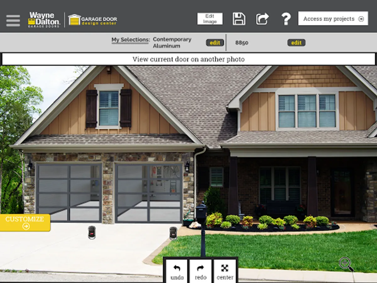 Make your garage door uniquely yours with the Wayne Dalton Design Center. Experiment with panel designs, color options, window styles and decorative hardware designs and place your custom-designed door onto a photo of your house. Instant curb appeal awaits with just a tap of the screen!