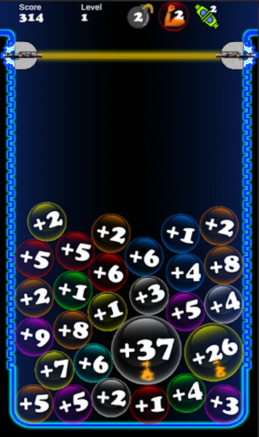 The power sparks sent out by popping bubbles push up the laser guns. When they reach the highest point, you get a level-up. The game becomes more challenging in higher levels. Bubbles will start to play some tricks on you too!