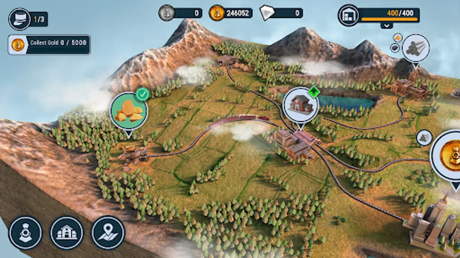 - Level up your train station headquarters, mines, and factories to maximize the profit