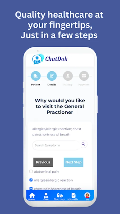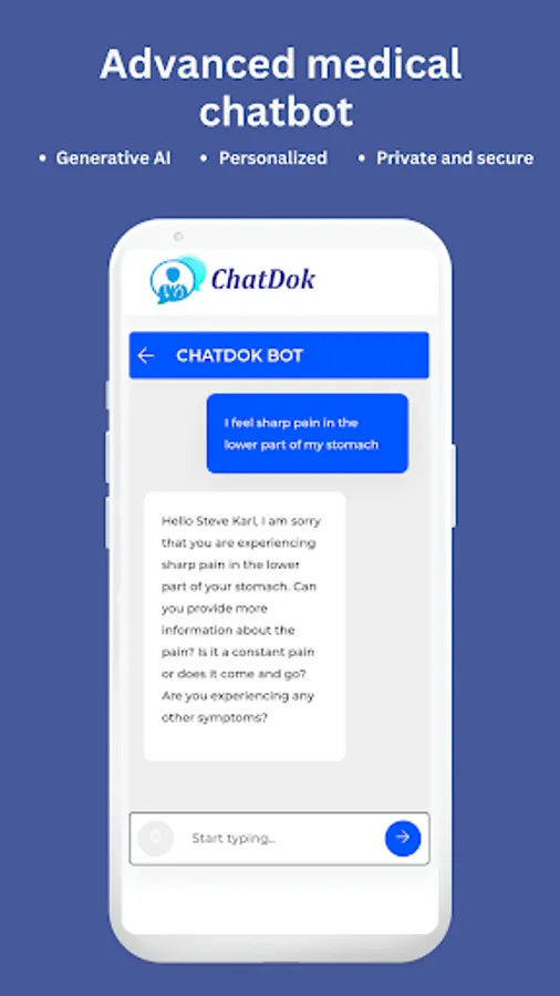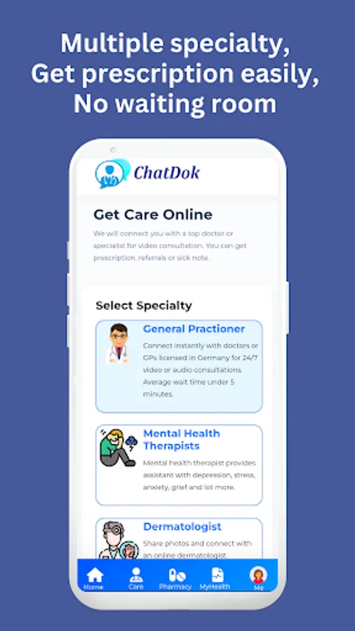 Get 24/7 personalized healthcare support with Chatdok: an advanced medical chatbot for symptoms assessment and general health questions, video consultations with doctors, dermatologist and therapists, and quick pharmacy delivery—all in one app.
