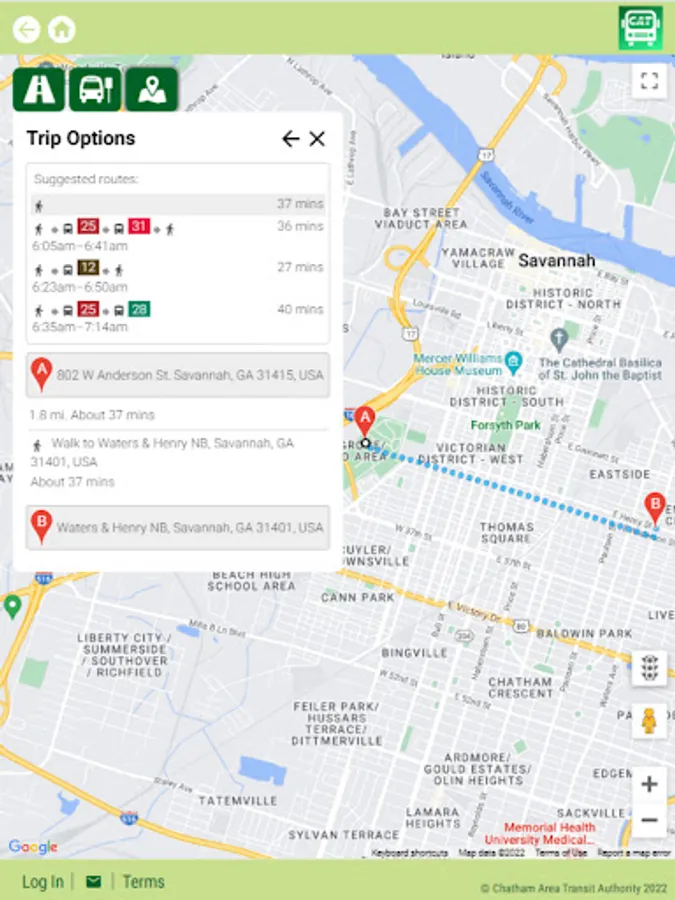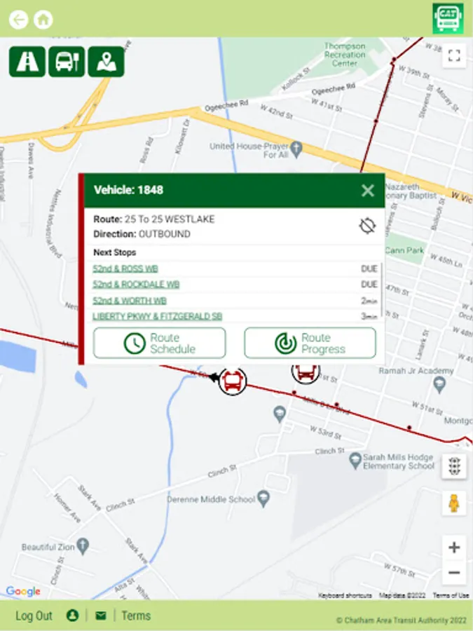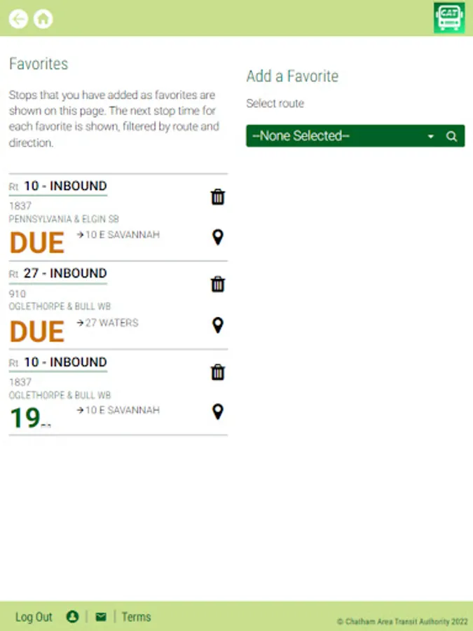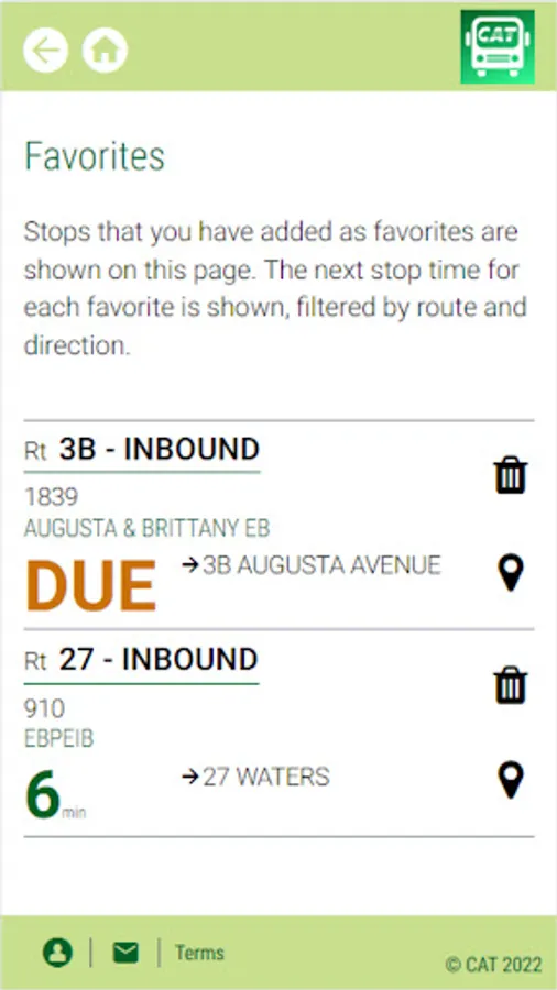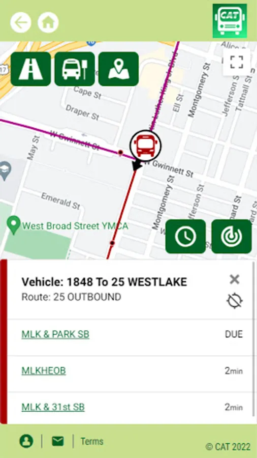 CAT Tracker, your source for real-time bus arrival information in Chatham County. Residents and visitors to now have real-time bus information at their fingertips. Track your bus, get bus arrival information, find nearby stops, find routes, and plan your trip from your mobile device! Save your favorite bus stop on the app to easily view stop arrival times. Subscribe to rider alerts and service detours and be informed before you start your journey. Set up text message alerts so you know when your bus is due. Click on the system map, select a route, and see where your bus is in real time. Enter your starting location and destination to access fast trip planning. Traveling with Chatham Area Transit has never been this easy!
