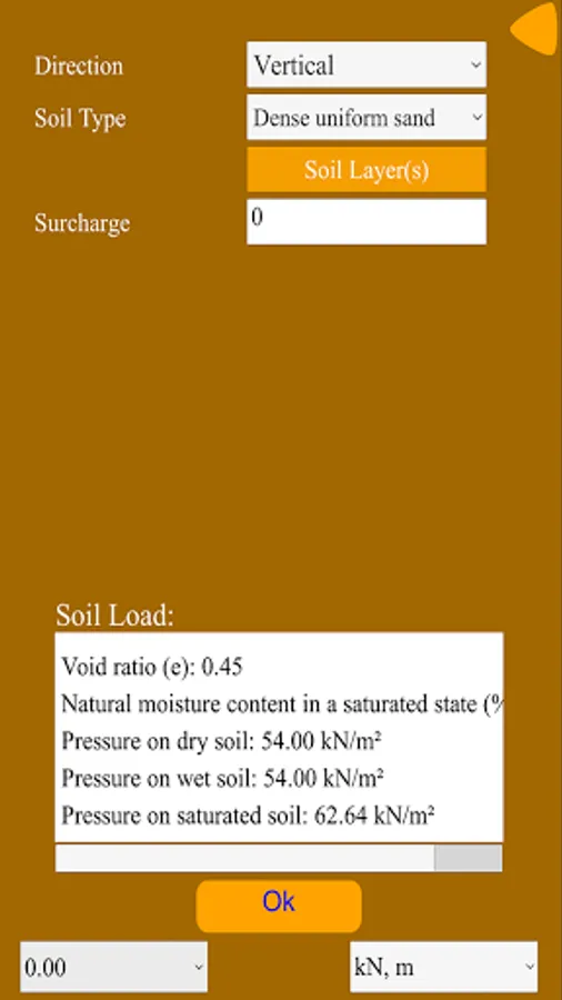 Soil is used as a construction material in various civil engineering projects, and it supports structural foundations. Thus, civil engineers must study the properties of soil, such as its origin, grain-size distribution, ability to drain water, compressibility, shear strength, and load bearing capacity. Soil mechanics is the branch of science that deals with the study of the physical properties of soil and the behavior of soil masses subjected to various types of forces. This app helps to easily calculate soil properties.