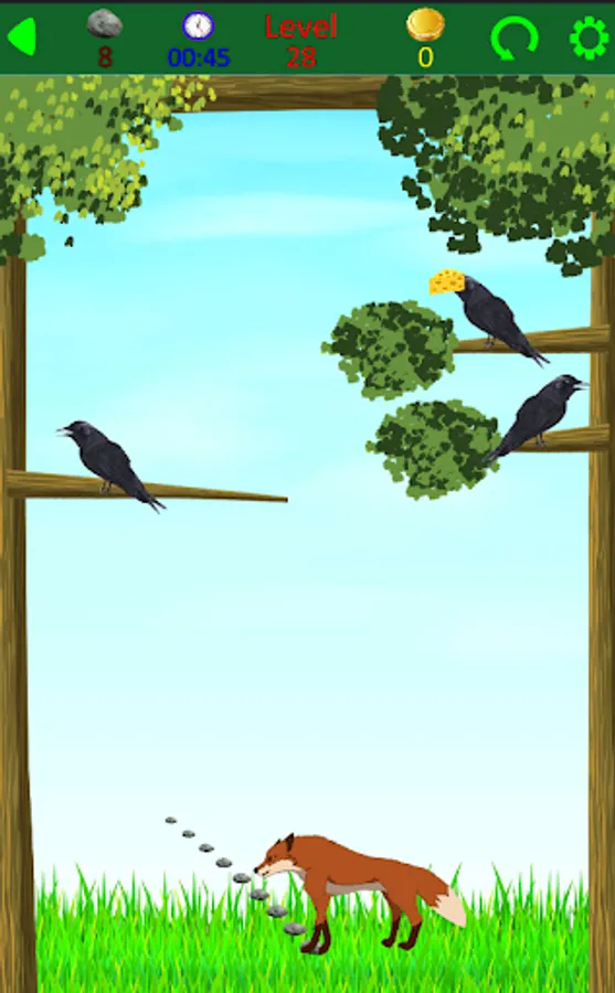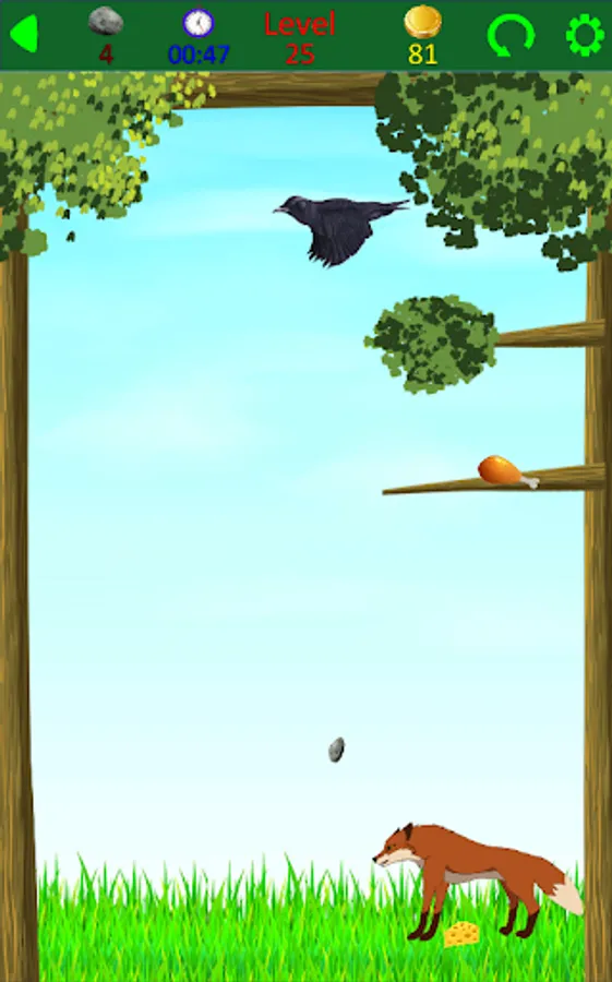 Welcome to the world of fables. A crow has found a piece of cheese and retired to a branch to eat it. In this addictive game you as a fox should hit the crow with stone and get the cheese. Have fun!!!