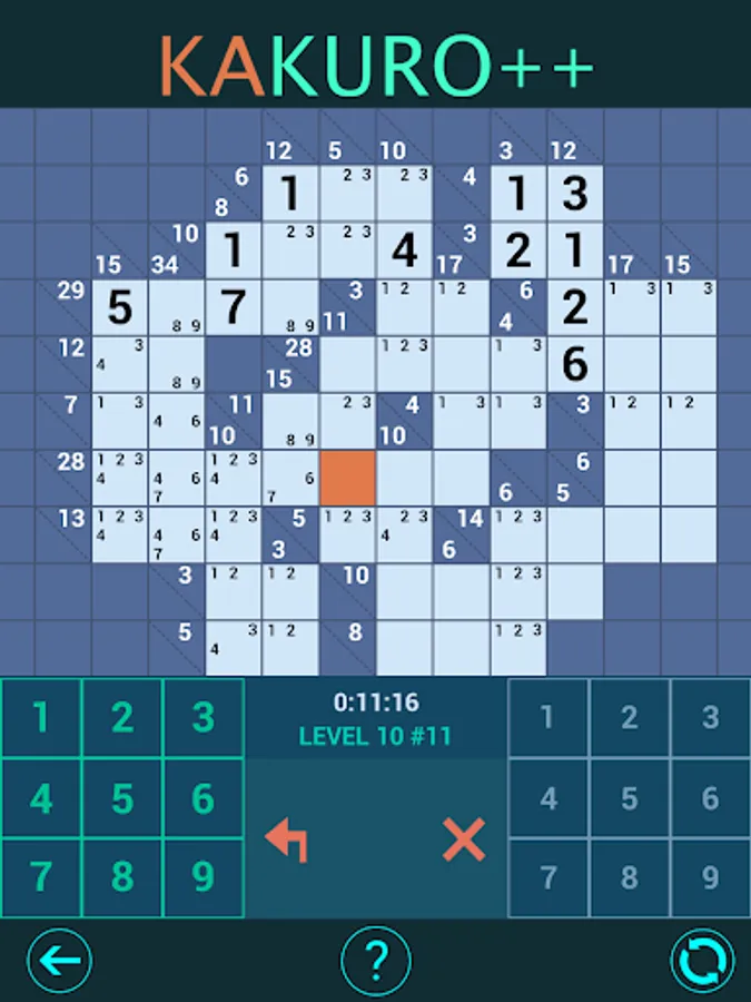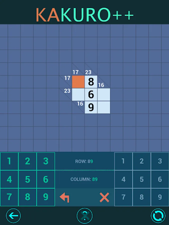 This version of Kakuro ++ adds unique features: