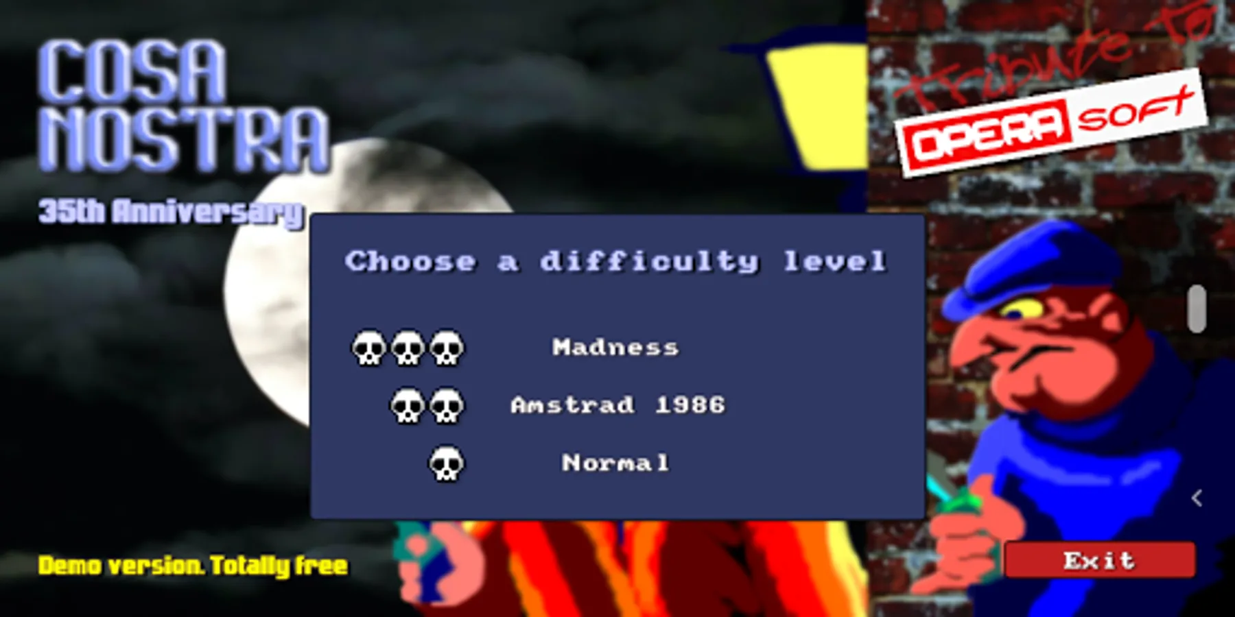 Cosa Nostra 35th anniversary 🎂 is a demo tribute to the 35th anniversary of the release of the game Cosa Nostra (1986, Amstrad CPC version) and to its creators (Opera Soft).