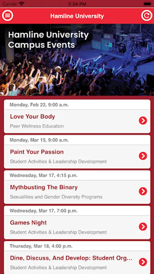 Use the Hamline University events app to find out what events are happening and find out how you can get involved on campus!