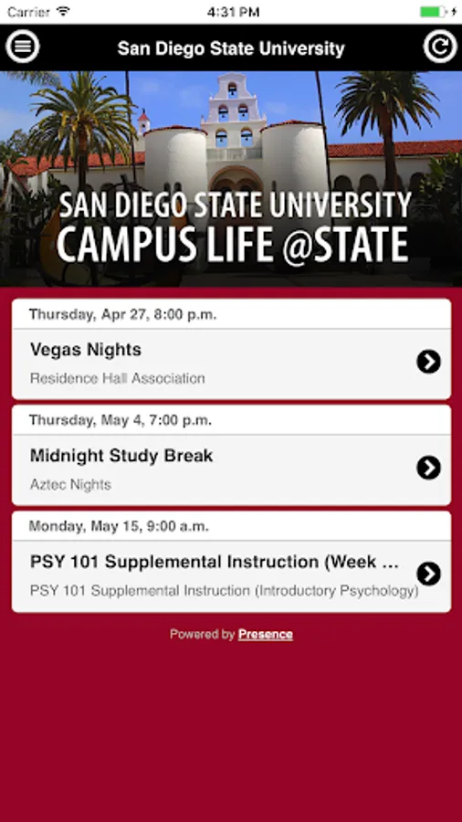 Use the San Diego State University Events app to find out what events are happening and find out how you can get involved on campus!