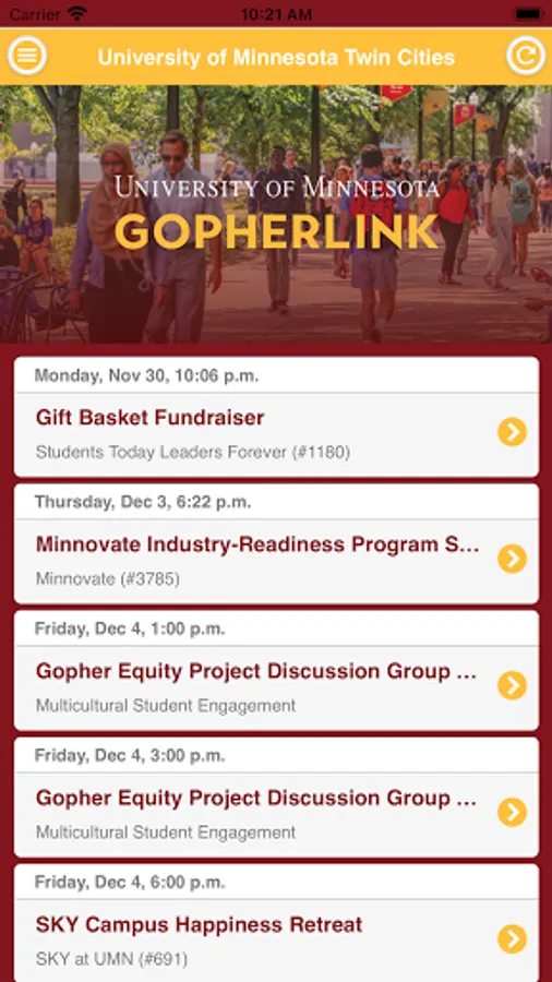 Use the Twin Cities - UMN Events app to find out what events are happening and find out how you can get involved on campus!