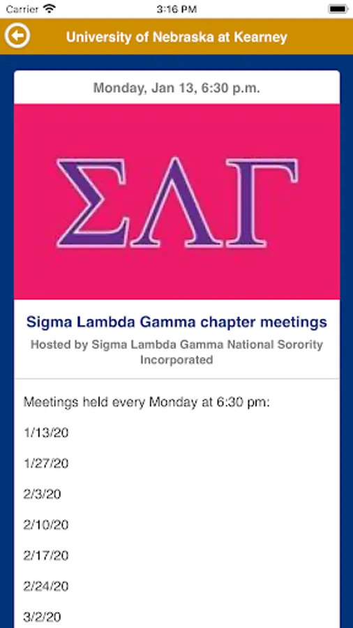Use the University of Nebraska Kearney Events app to find out what events are happening and find out how you can get involved on campus!