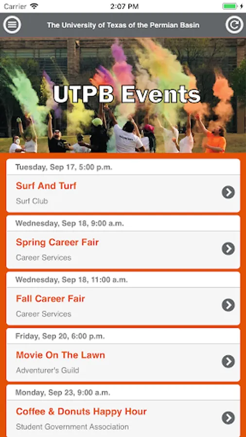 Use The University of Texas of the Permian Basin Events app to find out what events are happening and find out how you can get involved on campus!