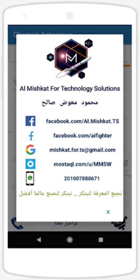 - Through the internal chat system, you can communicate directly with Chemist Antonious Tadrs at any time, attach photos and recordings .. and listen to his answers and advice directly.