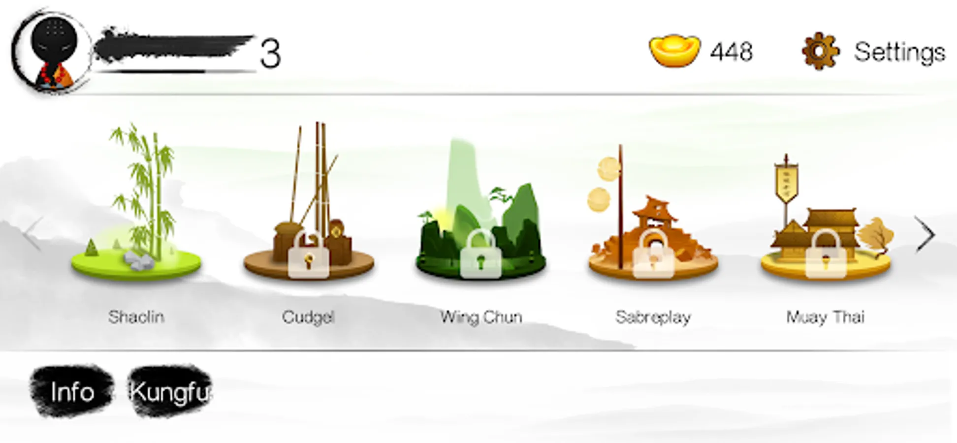 Every scene will have a kind of kung fu, complete all scenes, you will get all kung fu