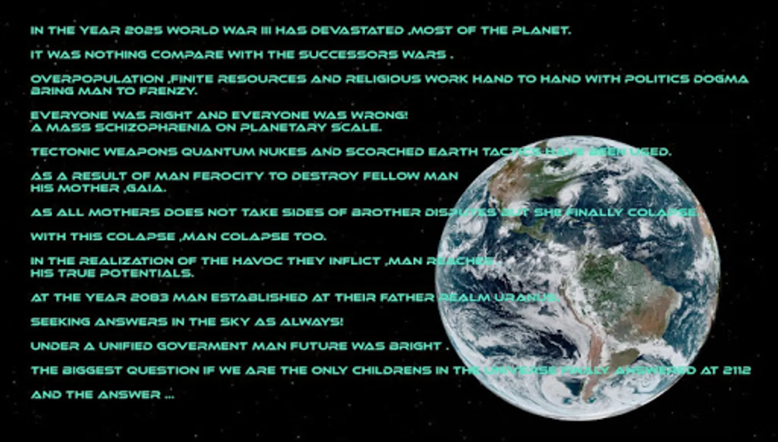 In the not so far future man stands on his feet. When finally humanity pass the puppetry of it is existence encounter the Vetans.