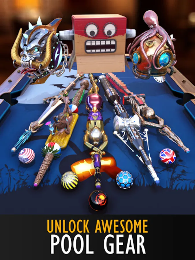 Collect and upgrade cues, balls and player avatar masks