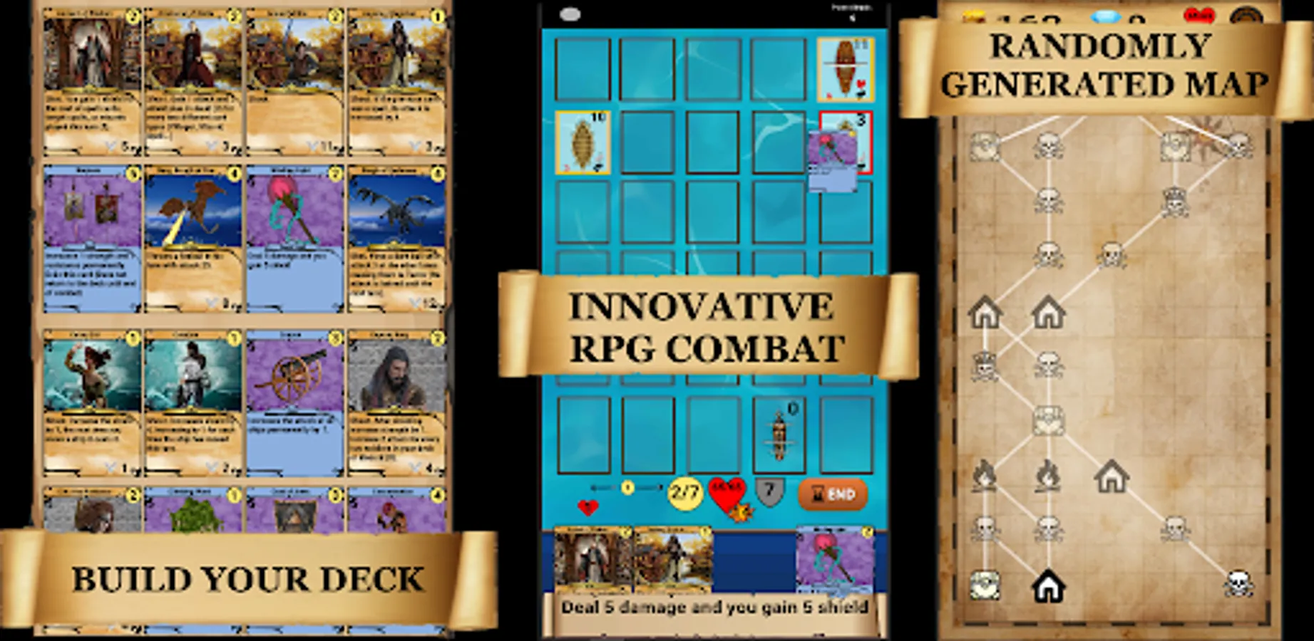 With randomly generated maps and battles, no game will be the same. Discover different combos and card synergies by adapting your strategy to the endless possibilities of developing the adventure.