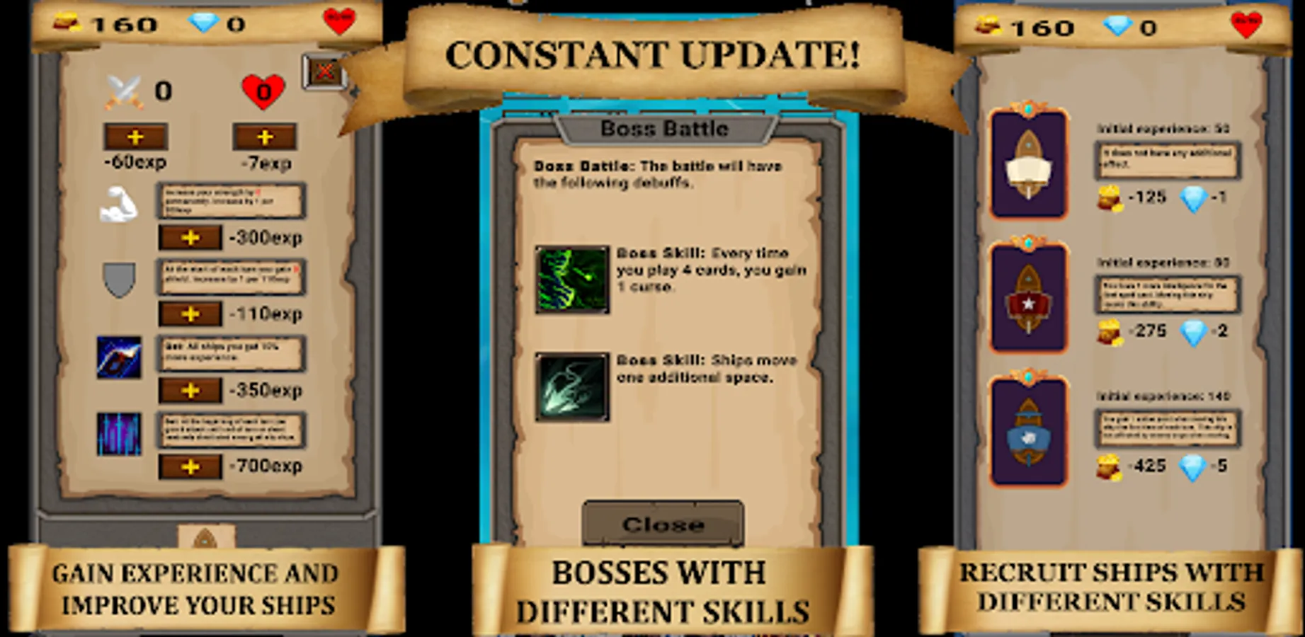 RogueShip is an incredible fusion of a turn-based card game and ship battles in which you must defeat countless waves of enemy ships with your custom deck.
