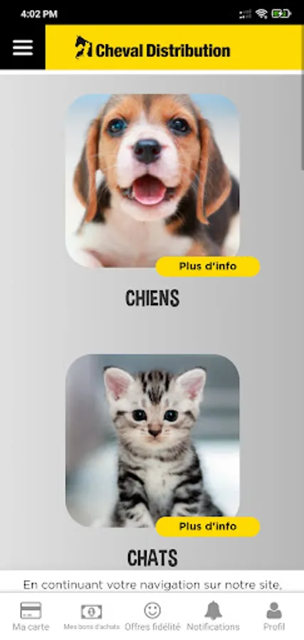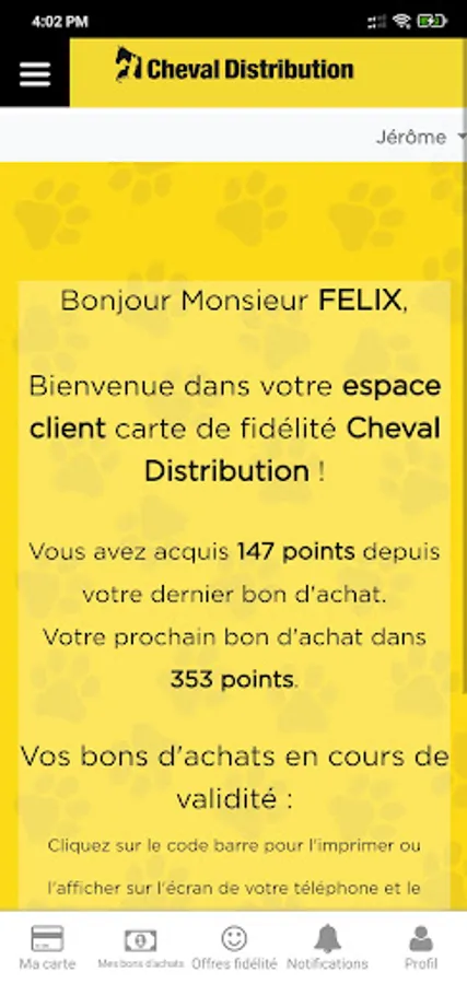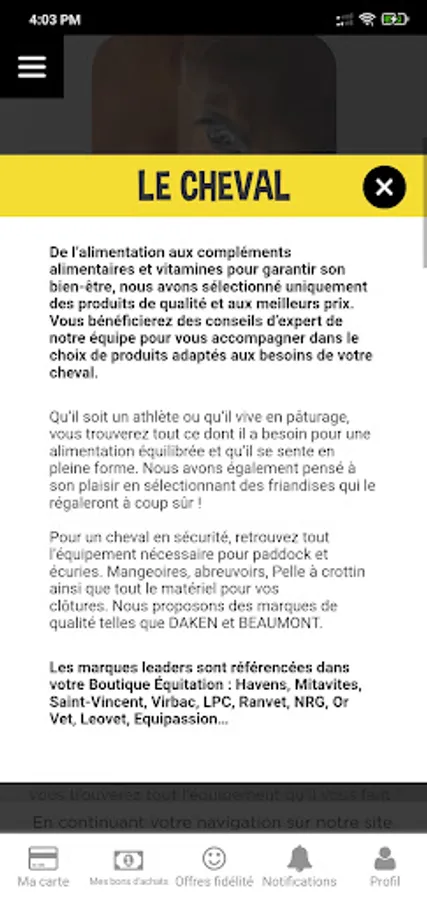 Application mobile de carte de fidélité Cheval Distribution pour bénéficier des offres réservées aux clients fidélité