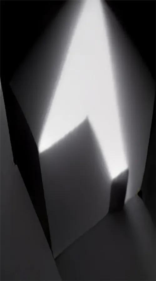 The AR matrix, when augmented, exhibits a looped animation (7 min.) showing more than 200 AI (GAN generated) images turning a real space into an abstract, pure, minimalist, conceptual void space. All the generated images part of the animation are shadow volumes designed by extruding the silhouette of the primitive along the direction of the light source. The shape is then created by rendering the shadow volume using stencil buffers to determine which pixels are in the shadow itself. And the ray-tracing goes along viewer intuitions.