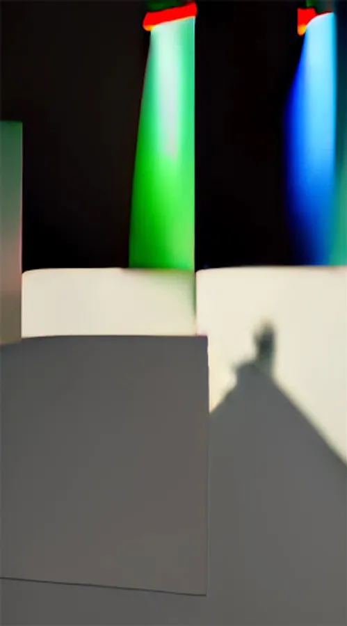 The AR matrix, when augmented, exhibits a looped animation (7 min.) showing more than 200 AI (GAN generated) images turning a real space into an abstract, pure, minimalist, conceptual void space. All the generated images part of the animation are shadow volumes designed by extruding the silhouette of the primitive along the direction of the light source. The shape is then created by rendering the shadow volume using stencil buffers to determine which pixels are in the shadow itself. And the ray-tracing goes along viewer intuitions.