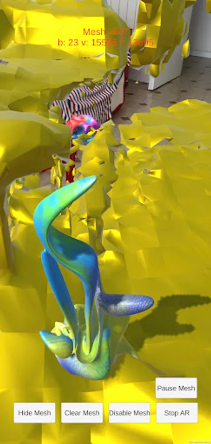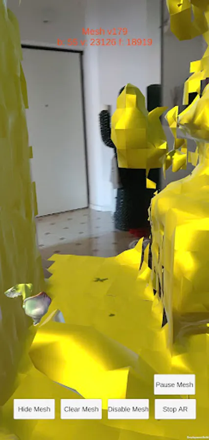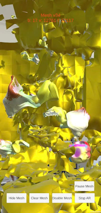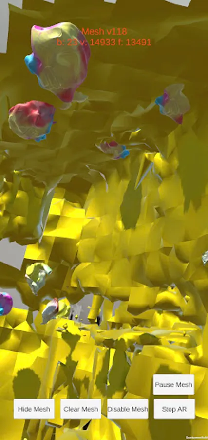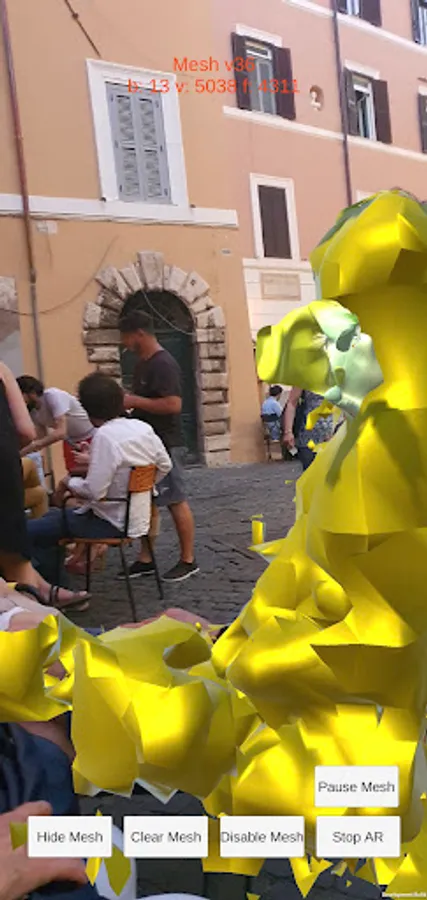 Button Stop/Run AR to generate AI gold meshes all over the real place.