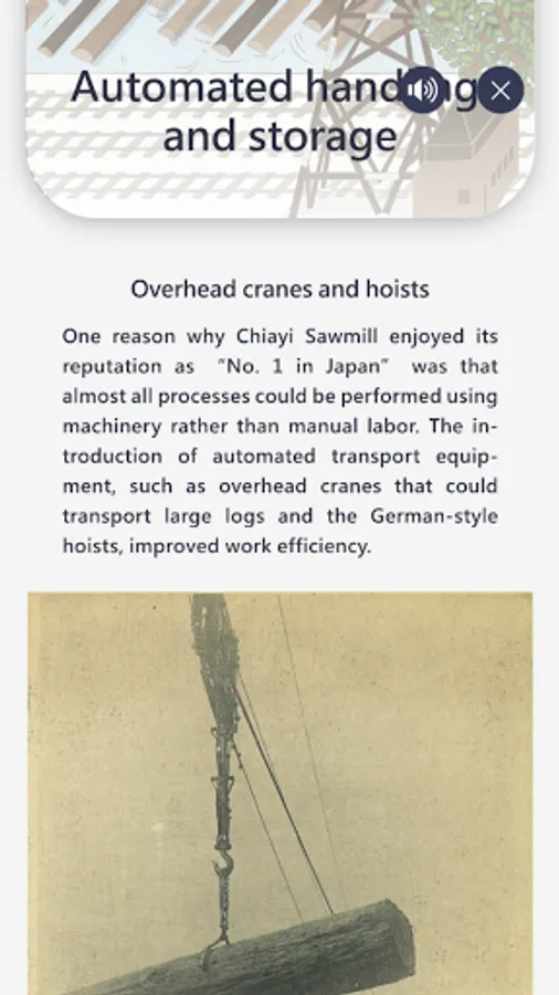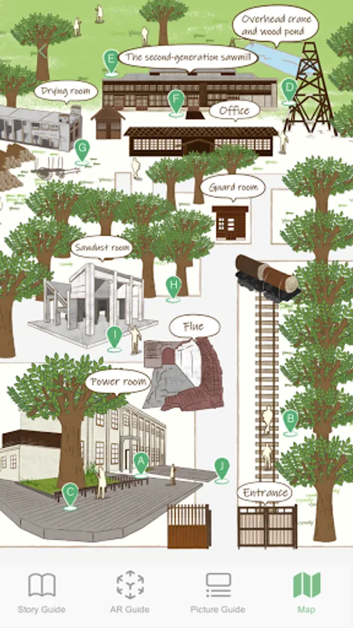 Chiayi Sawmill waswas once the “largest sawmill in East Asia” and had the most advanced equipment and technology during the Japanese Occupation, witnessing the history of the forest industry. Currently, it is registered as a historical building. After restoration and adaptive reuse, it is now a recreational area functioning both as a cultural preservation area and exhibition center in the urban area of Chiayi City. Welcome to the AR Guide App of Chiayi Sawmill.