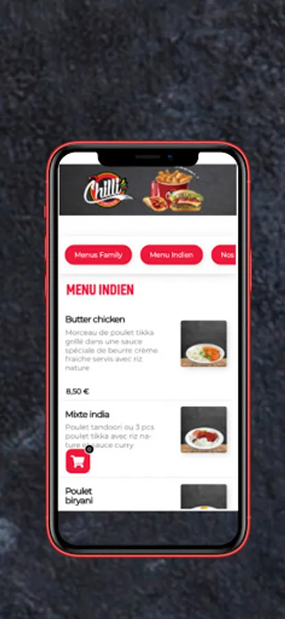 Installed at your home or at the office, find all our Indian specialties, chicken menus or even our delicious burgers! Download the app, choose your products and pay directly online. Then come and collect your order by click'n'collect or have it delivered to compatible cities. A personalized sms will be sent to you to inform you of the follow-up of your order..