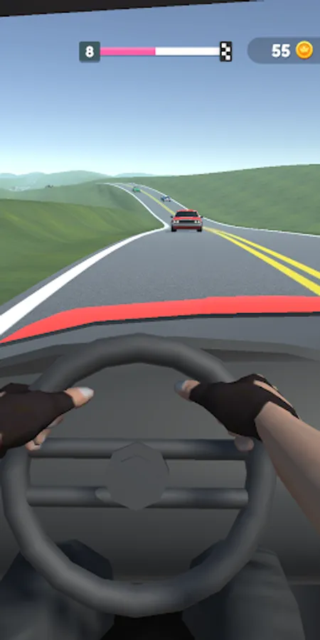 Overtake cars to proceed to the next level.