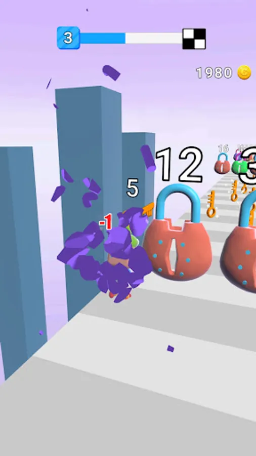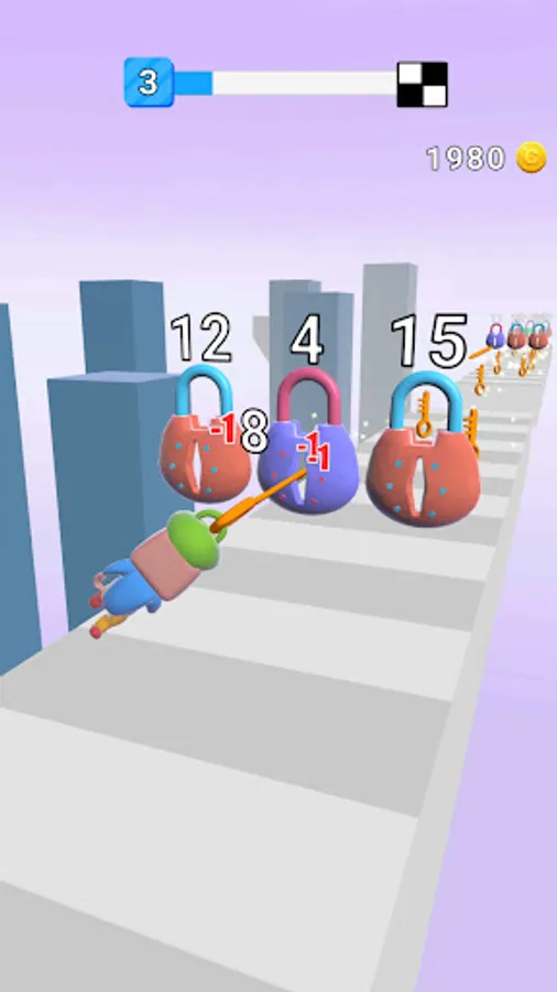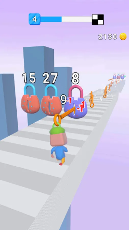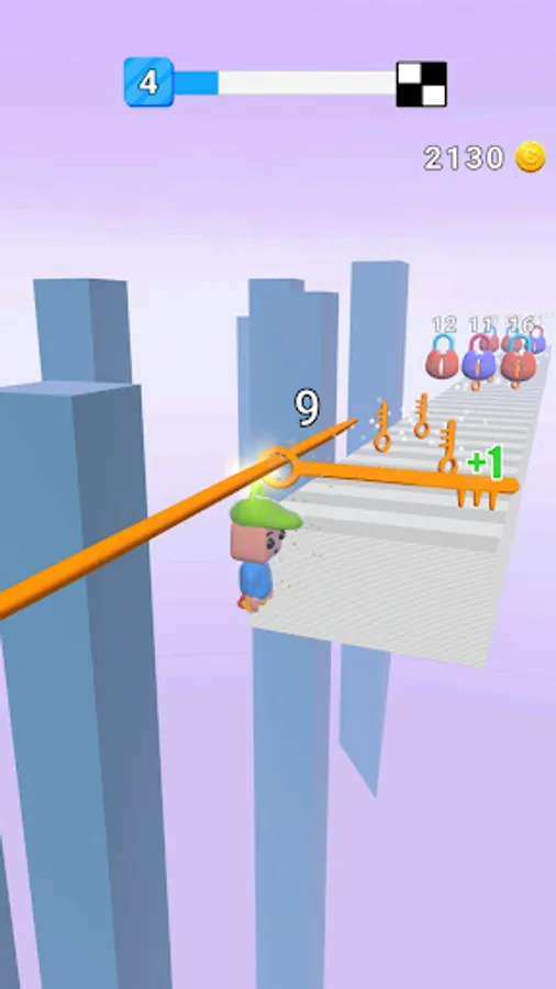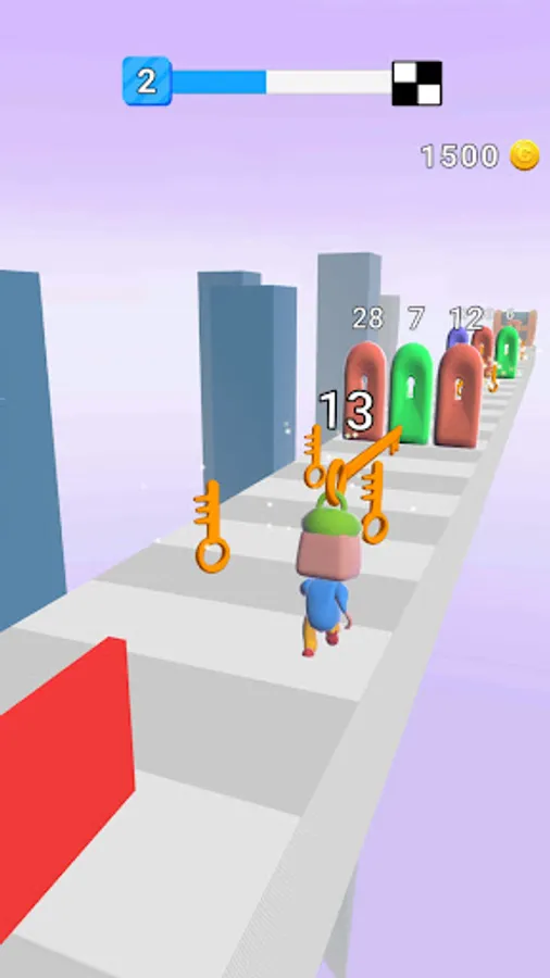 You can progress by collecting the keys on the road and opening the doors and locks with your ever-expanding key.