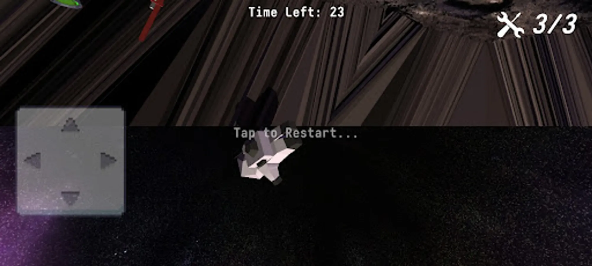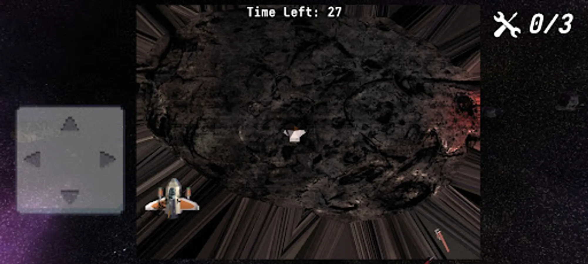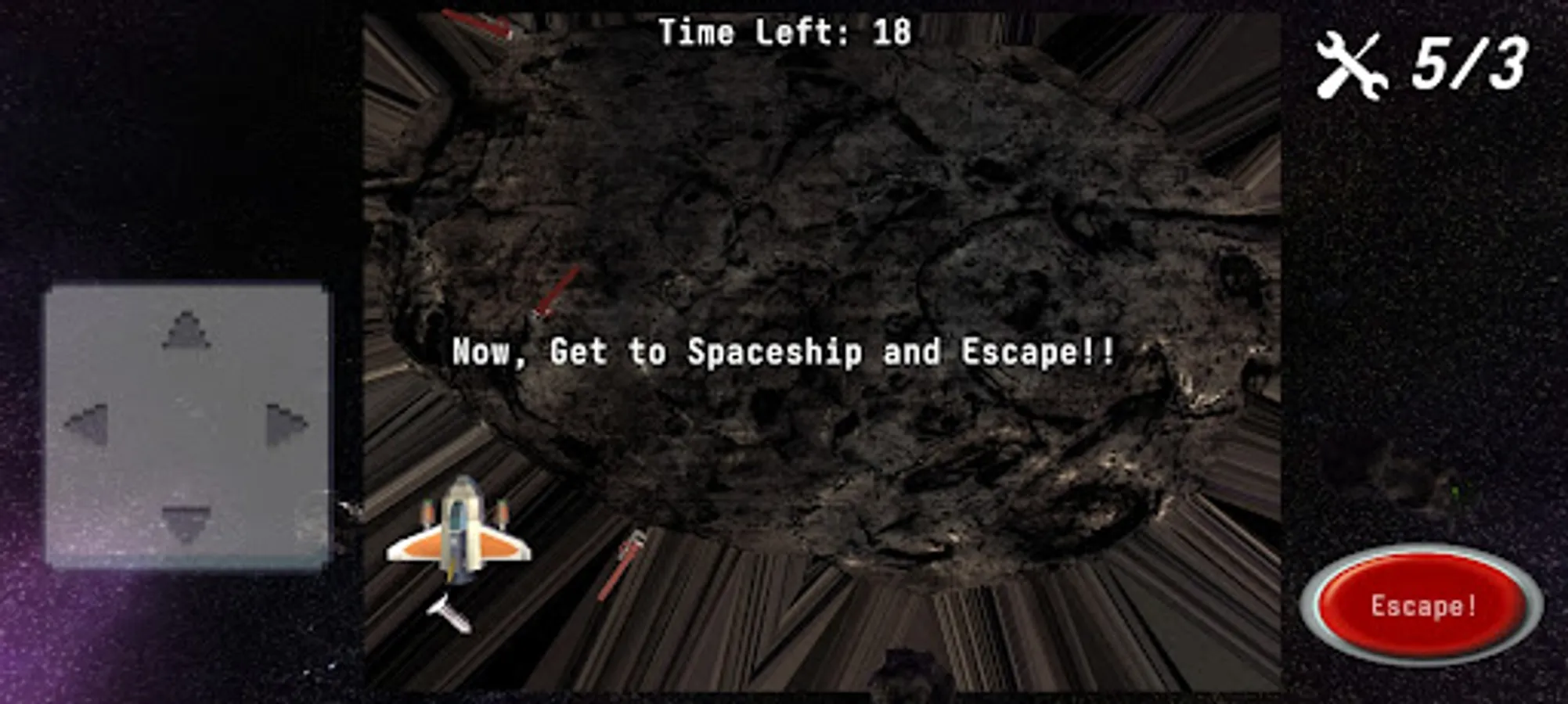 While avoiding asteroids, fix the spaceship and push the escape button ASAP!