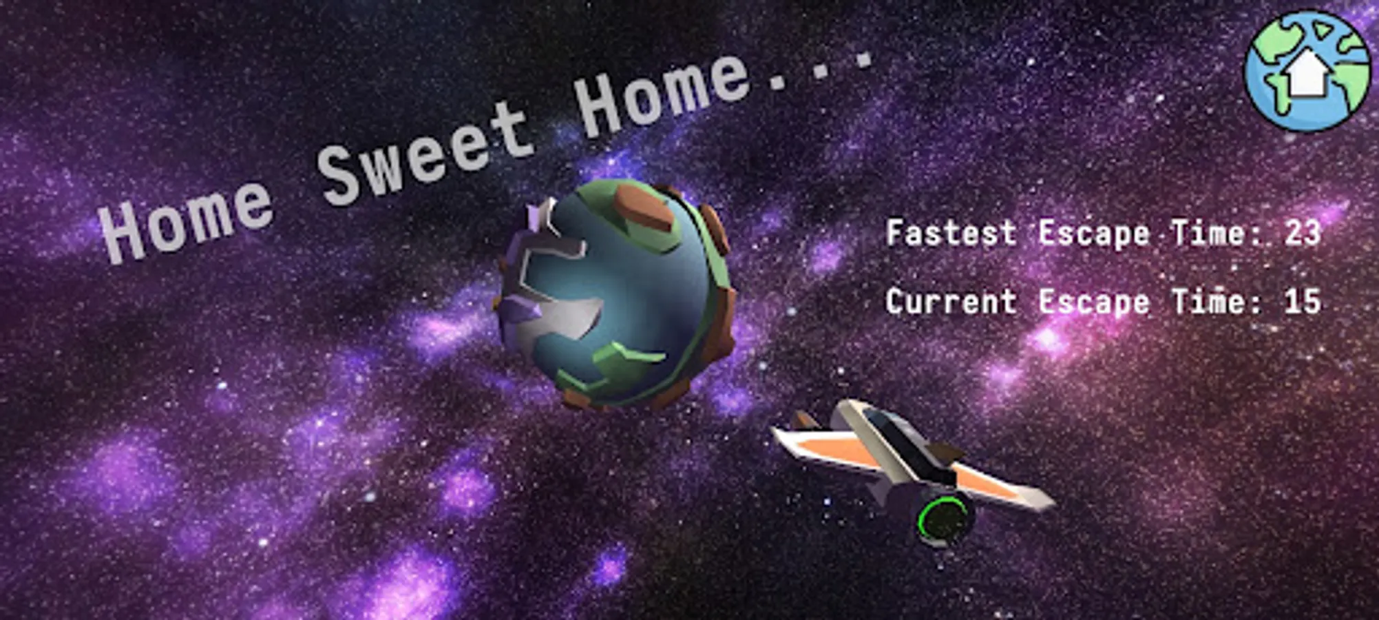 제한 시간 내에 덮쳐오는 소행성을 피하면서 재료들을 모으고 우주선으로 들어가 탈출 버튼을 최대한 빨리 누르세요!!