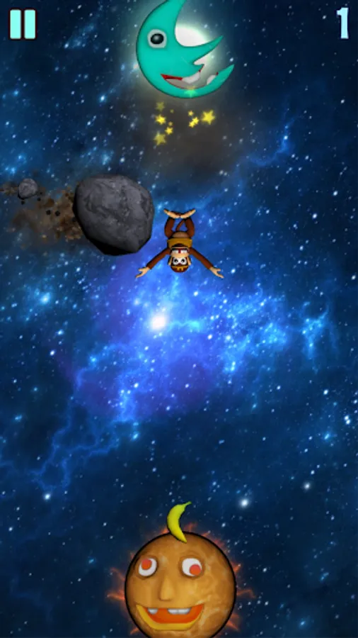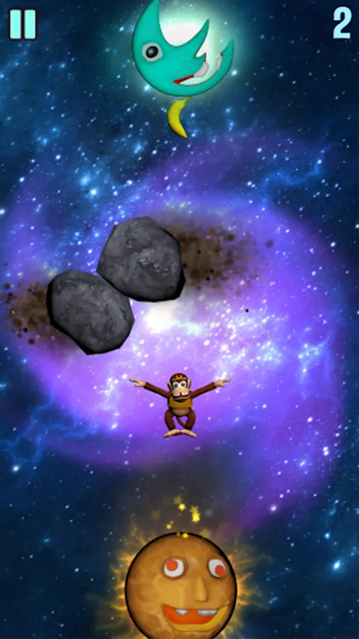 In this game, you must control cute monkey go up and down to get the bananas without getting collide with meteors is flying over. The game has simple content but no less attractive, accessible to everyone, help you have moments of relax, reduce stress.