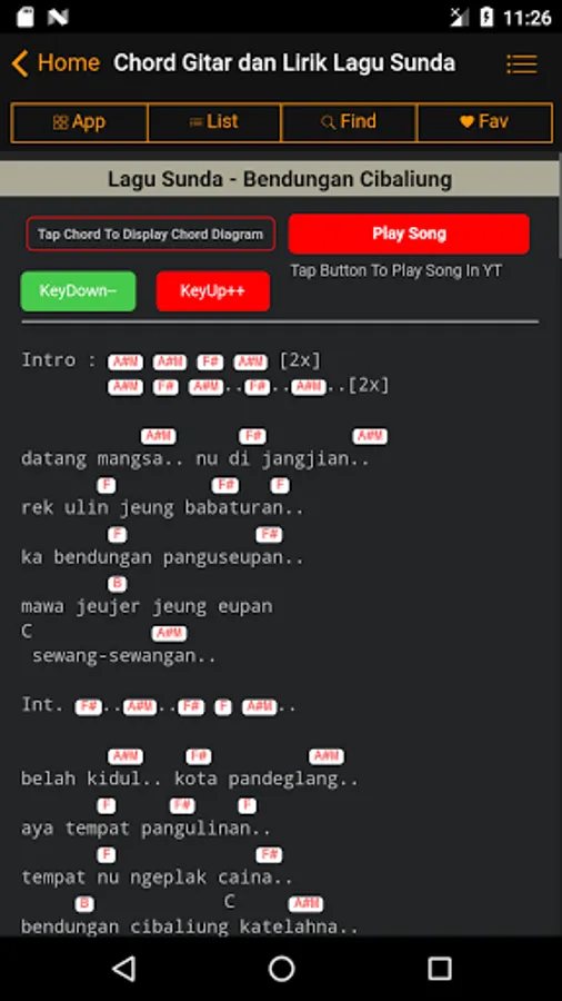 This application will continue to be developed again in the future, if you don't like the Sundanese Chords List or maybe you don't like it much, please understand. Therefore of course if you are a fan of Sundanese songs, you will not give this application a bad rating :)