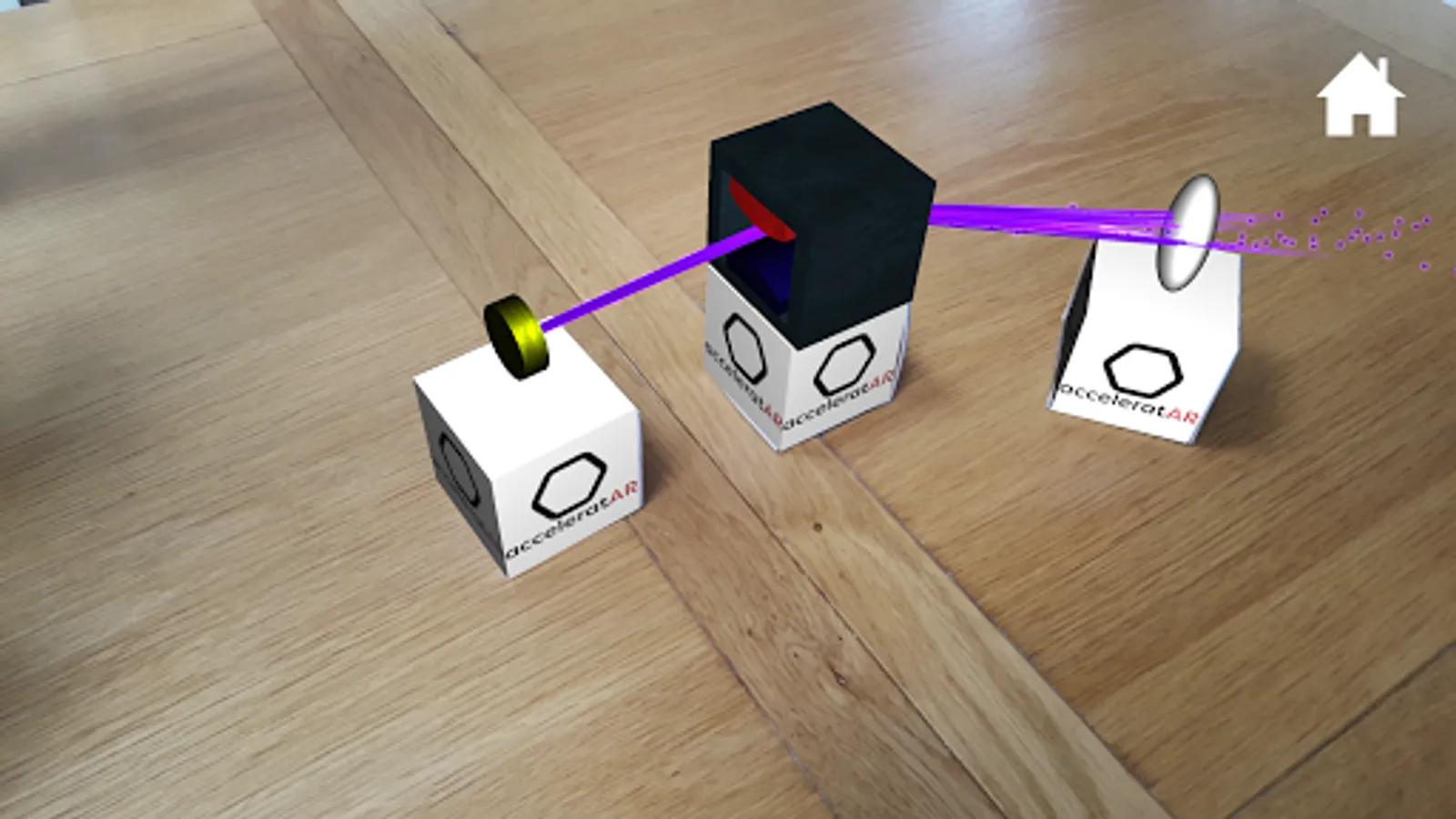 To get started, all you'll need is a set of our paper accelerator components (pick yours up from our website) and our Android app. Place the components and begin to explore the physics of the electromagnetic fields that make up a particle acclerator.