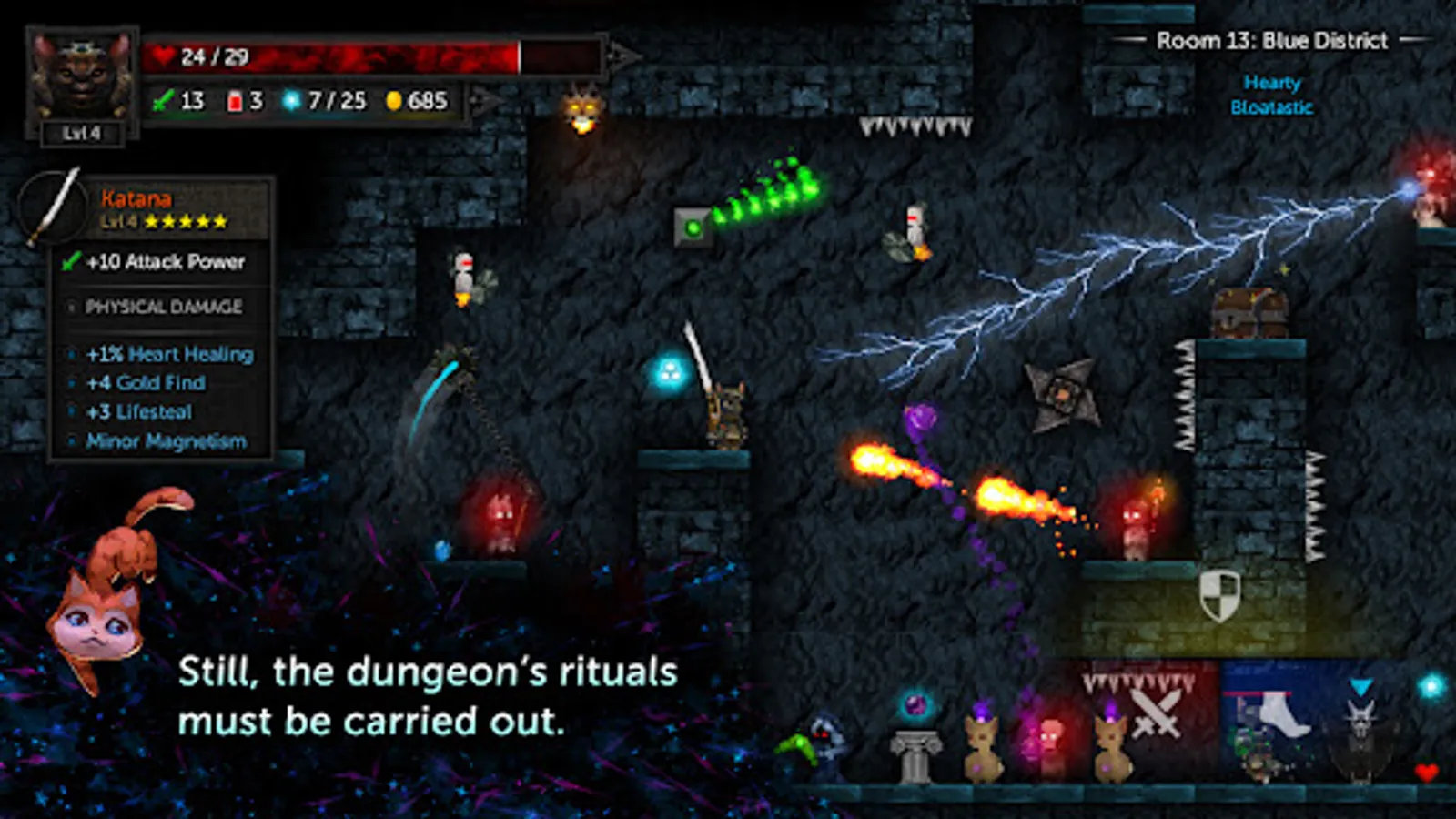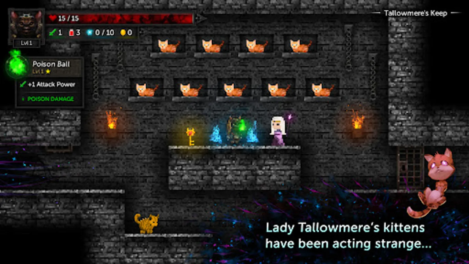 Lady Tallowmere's kittens have been acting strange. Still, the dungeon's rituals must be carried out. Despite the unusual circumstances, how many rooms can you clear?