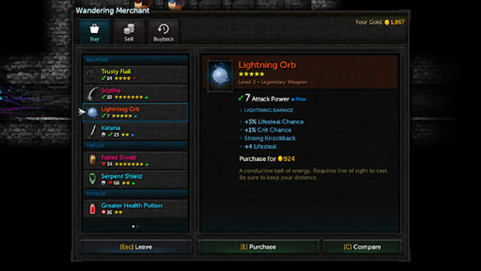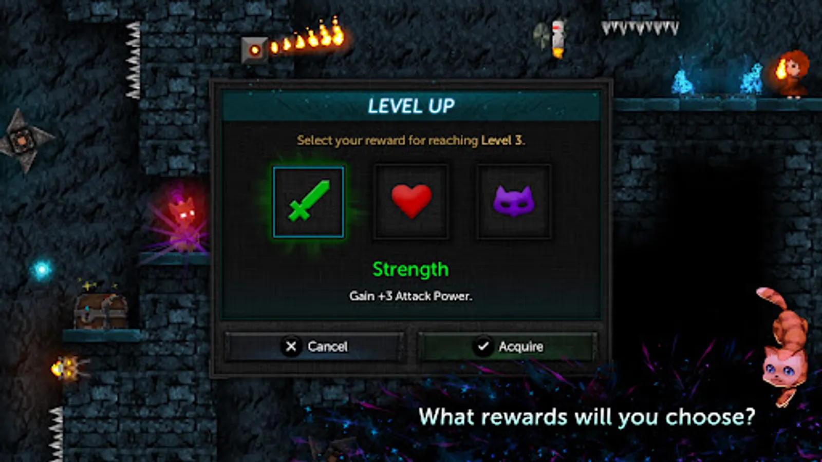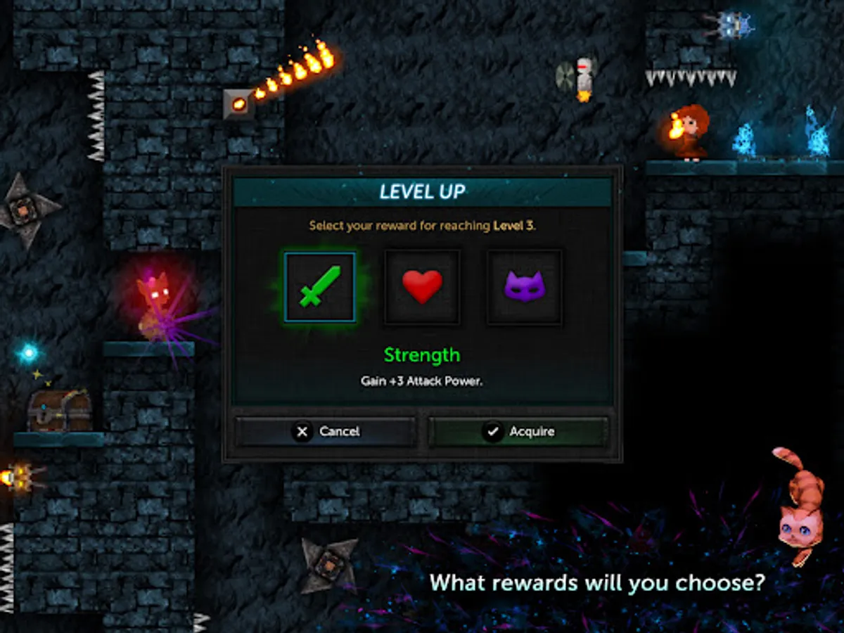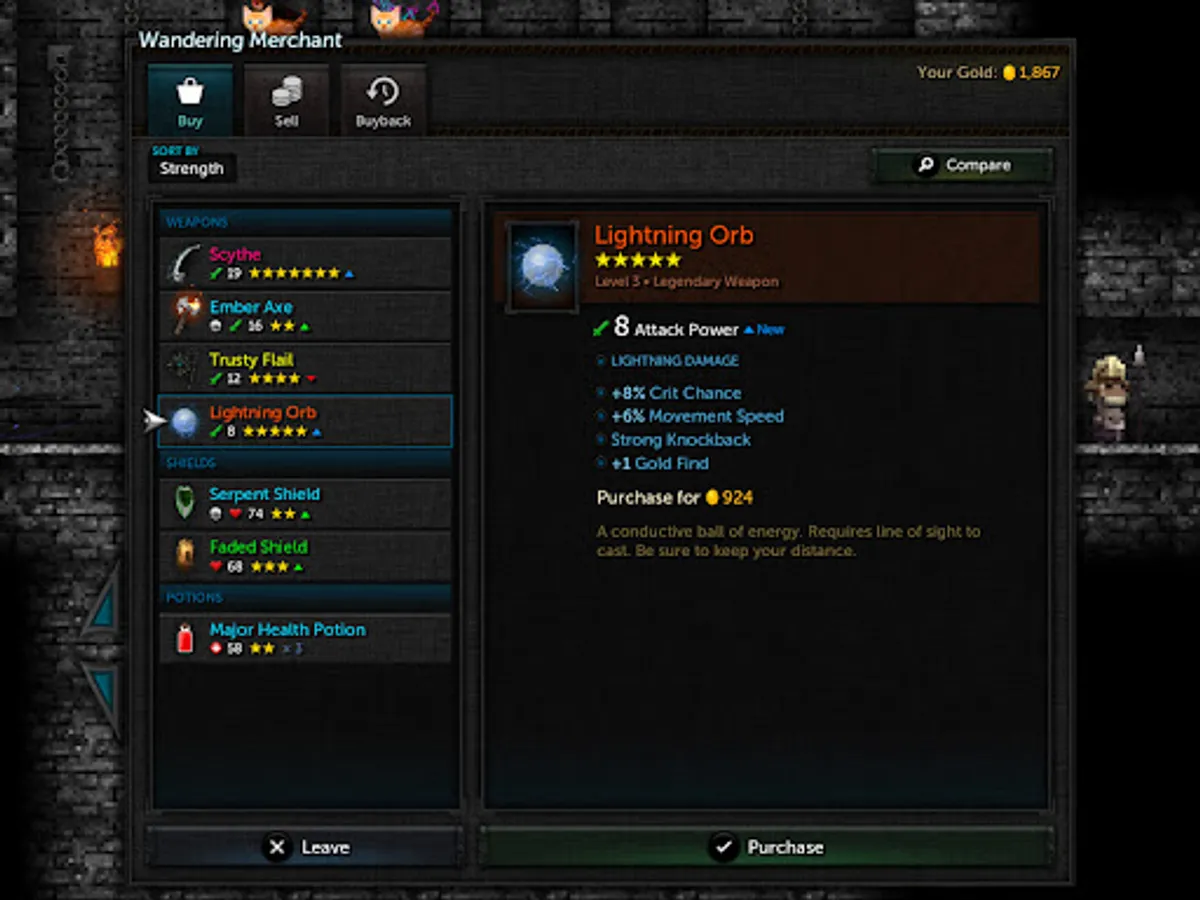 • Level up. Acquire weapons, shields, blessings, and potions to alter your character.