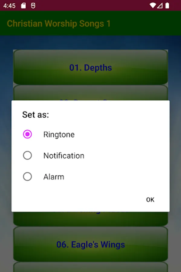 * Ringtone. Each audio can be set as Ringtone, Notification, or Alarm for our Android gadget.