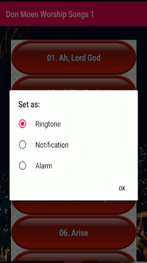 * Ringtone. Each Song can be set as Ringtone, Notification, or Alarm for our Android gadget.