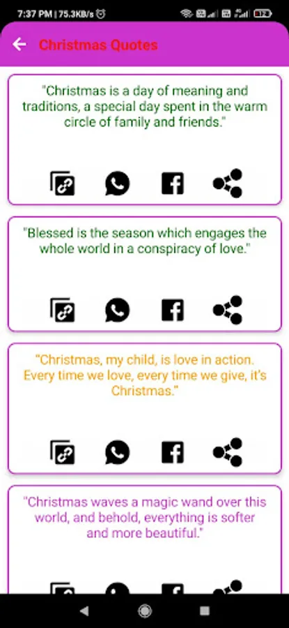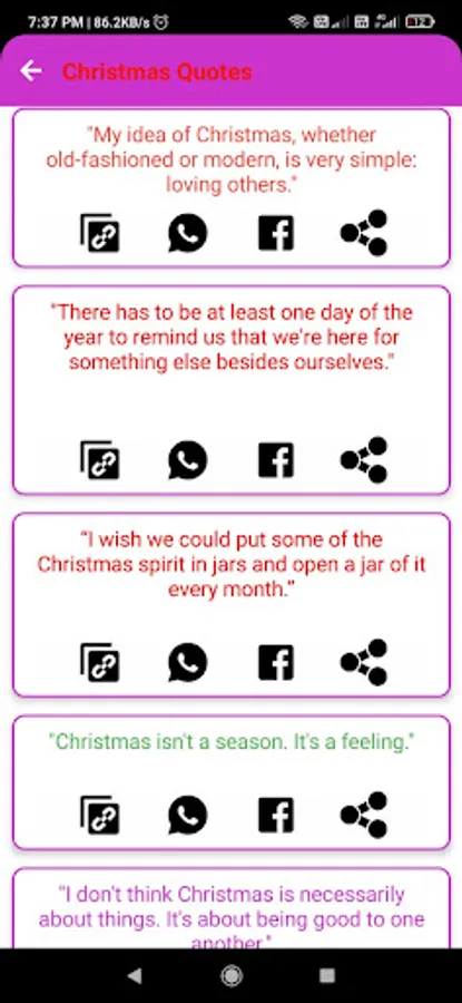 This is new Merry Christmas Quotes and Wishes app in the Google Play Store and it is FREE for all. Start sending greeting cards to friends and family with this beautiful quotes and greetings. Take a look into the app and you could browse all of the Christmas quotes and greetings that is stored for you. Slide to choose different picture of your liking.