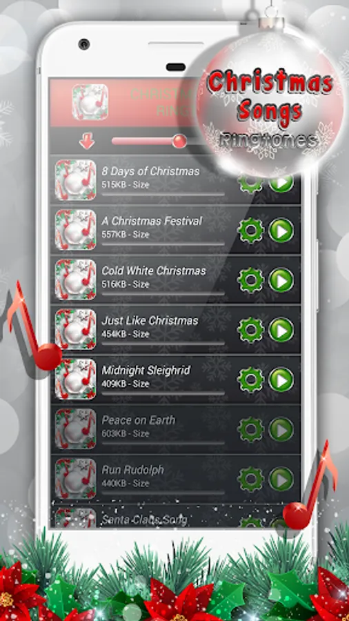 ⛄ Don't miss the chance to have all these Christmas songs free! Choose one of the melodies that 🎼 Christmas Songs Ringtones 🎼 has to offer and spread the joy among your friends and family. Gather them around the fireplace and let the “Christmas music” echoes your warm home. Remember good old times with a smile upon your face and sing along to the one of your favorite Christmas carols. Whether you play Let it snow or maybe Jingle Bells fun is absolutely guaranteed. Install this fun Christmas app and you will be blown away by the number of beautiful “free ringtones” ready for you to enjoy! You will end up loving your new Christmas ringtones for mobile phone so much that you won’t even answer to your calls so that you can listen to these romantic melodies as long as possible. ⛄