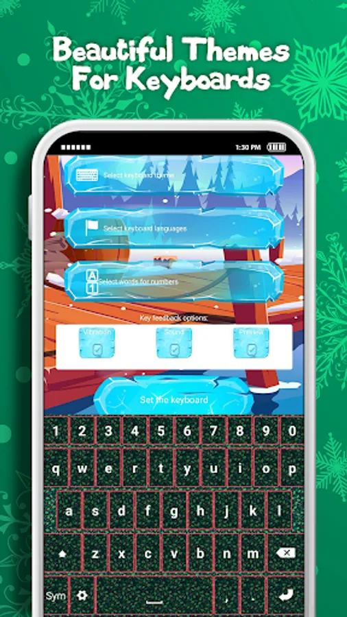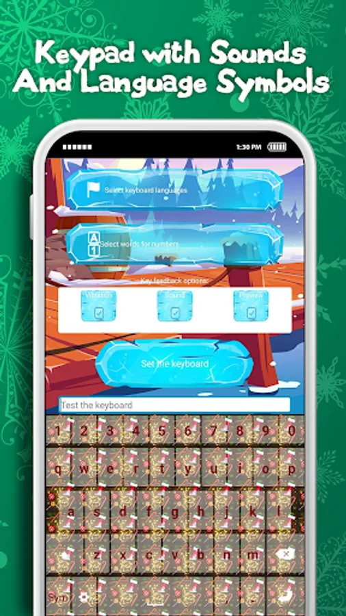 An incredible holiday keyboards app with keypad sounds, wallpapers, and shortcuts!