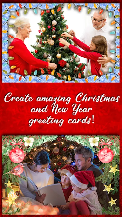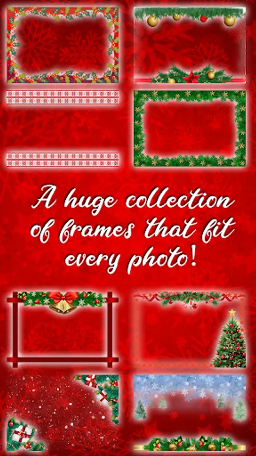 🎅 🎄🎁 Your "Christmas cards" will draw attention with their unique design and their smile-inducing power, which is what classifies Christmas Photo Frames – Merry Xmas Card Maker among the best free Xmas photo editors. Every "New Year photo frame" that is part of this collection possesses some distinctive features. Its remarkable design blends vivid colors and famous symbols in order to bring to you all these gentle emotions that warm our soul at the times of the celebration of life. Add some "Christmas photo editing effects" to your ordinary photos and transform them into photo cards that you can send with just a couple of clicks! Write an appropriate Christmas text and let your images speak volumes!