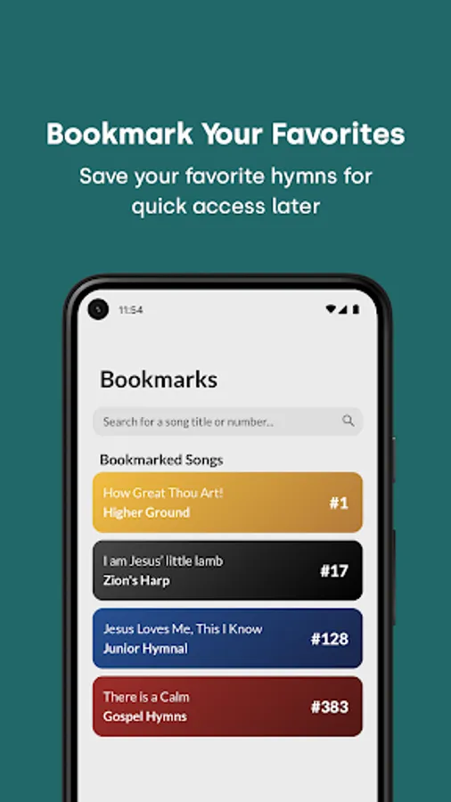 ACC Hymns allows you to sing from the Zion's Harp, Gospel Hymns, Higher Ground and the Junior Hymnal. You can find songs faster by searching or by bookmarking songs.