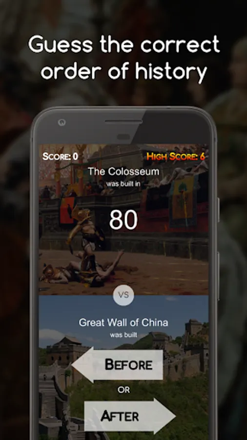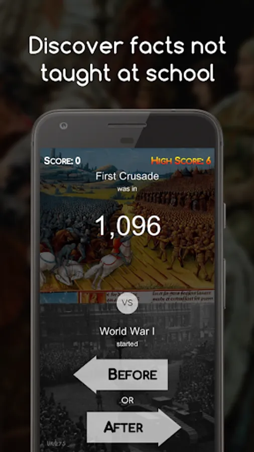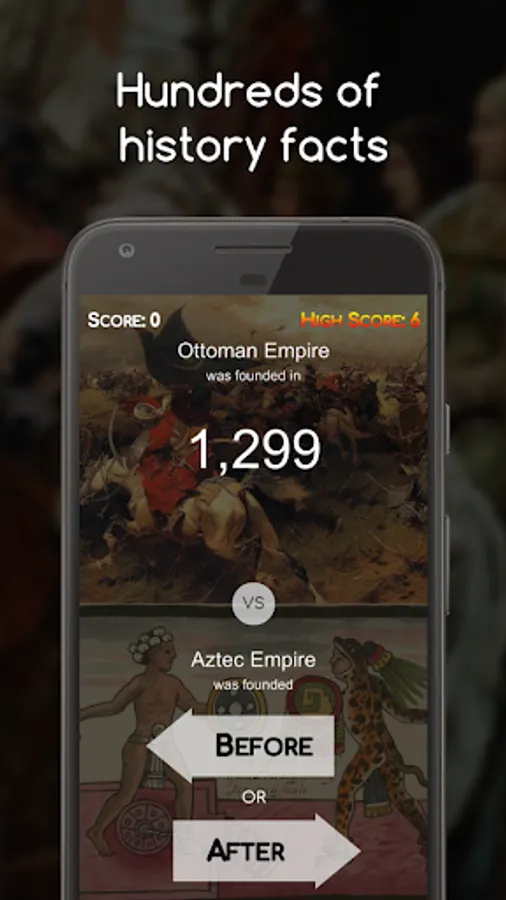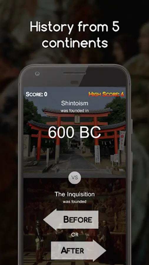 History Time offers a big selection of history facts that are getting updated continuously, its fun and addictive gameplay will help you learn some new history facts or give you better insight and put into perspective human history.